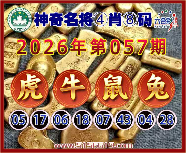 057期:〖神奇名将〗 🏵️④肖⑧码🏵️【虎牛鼠兔】开:猴23