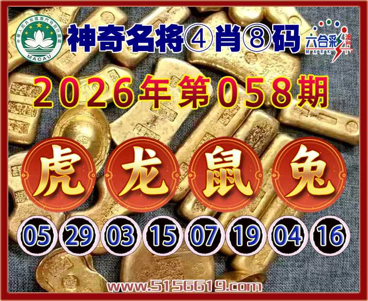 058期:〖神奇名将〗 🏵️④肖⑧码🏵️【虎龙兔】开:鼠31准上榜高手