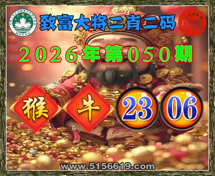 050期: 致富大将 🧶二肖二码🧶【牛】【23.06】开:猴23