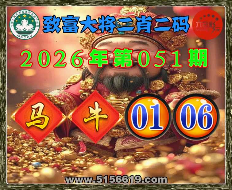 051期: 致富大将 🧶二肖二码🧶【牛】【01.06】开:马01