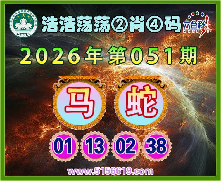 051期:〖浩浩荡荡〗 🍄②肖④码🍄【蛇】【01.13.02.38】开:马01