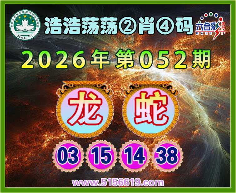 052期:〖浩浩荡荡〗 🍄②肖④码🍄【龙】【03.15.14.38】开:蛇38