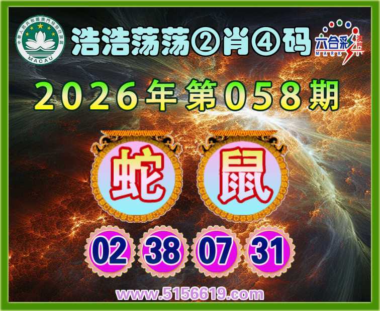 058期:〖浩浩荡荡〗 🍄②肖④码🍄【蛇】【02.38.07.31】开:鼠31准上榜高手